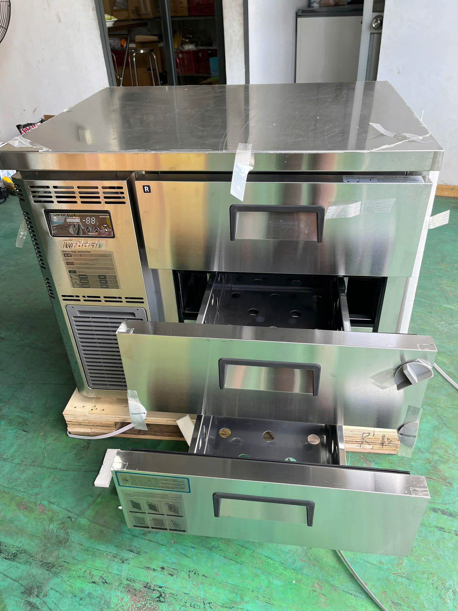 KUR9-3D-3 – bàn mát 3 ngăn kéo Turbo Air là sự kết hợp hoàn hảo giữa thiết kế thông minh, hiệu suất làm lạnh cao và khả năng tiết kiệm không gian. Đây là giải pháp bảo quản thực phẩm tối ưu cho các mô hình bếp chuyên nghiệp hiện đại.